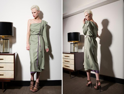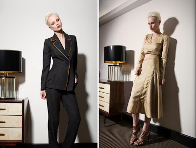 I Capi spalla hanno volumi essenziali, quando non diventano corazza, imponendo spalle alte a conchiglia; i pantaloni seguono linee pulite ed essenziali in tessuti da completo maschili (cachemire, lana/cachemire e lana pura 120’s di produzione nazionale); le bluse in bourette di seta tinta a mano sono in edizione limitata, così come le camicie in seta pura.