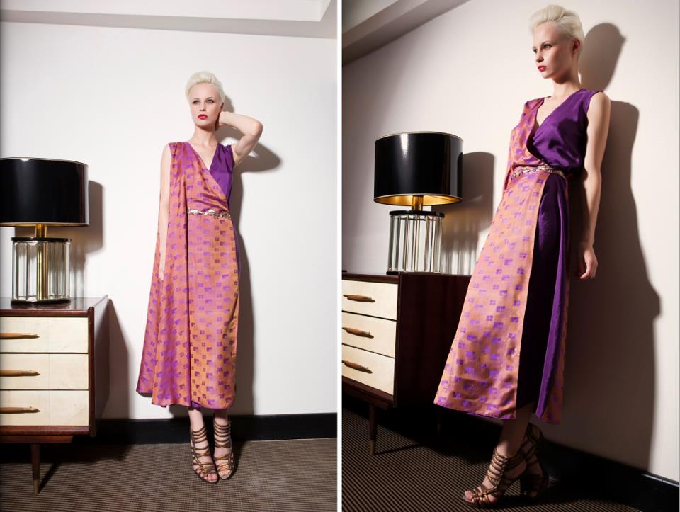 Per la sera, gli abiti realizzati con i saree indiani a motivo optical ,sono anch’essi pezzi unici nella forma, nella fantasia e nel colore.