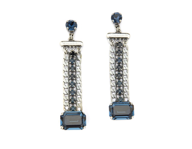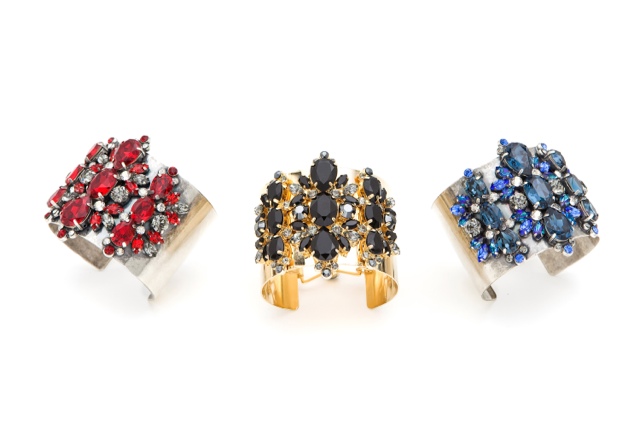 Una collezione riccamente elaborata con cristalli Swarovski sfumati nelle tonalità del rosso, del blu e del nero.