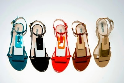 Scarpe flat dal taglio trapezoidale, sandali dai colori sgargianti con tacco squadrato e tronchetti dall’allure vintage.