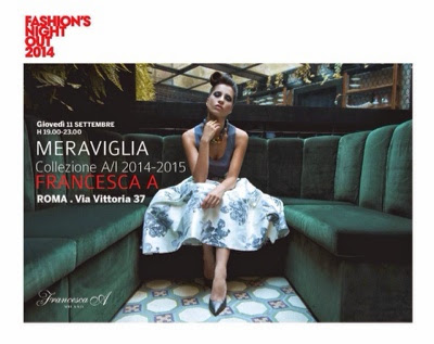 In occasione della Vogue Fashion Night Out 2014 a Roma ,nell’elegante boutique di Via Vittoria 37 nel centro della città’ ,Francesca A ha presentato la sua collezione