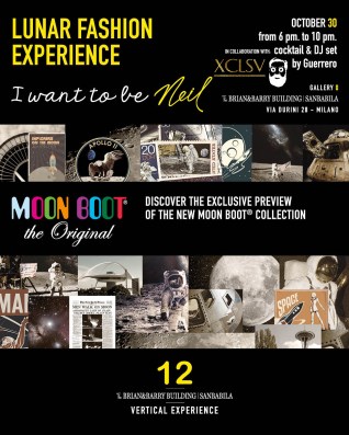 Il 30 ottobre dalle 18 alle 22 a conclusione della Lunar Fashion Experience un cocktail in perfetto stile 12 The Brian&Barry building per festeggiare la scoperta in anteprima assoluta della nuova winter sneaker di Moon Boot “Neil”.