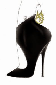 Vernice nera, sinuosi tagli che scoprono lembi di pelle e ali dorate , caratterizzano questa calzatura dalla prorompente personalità.