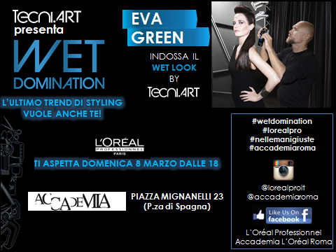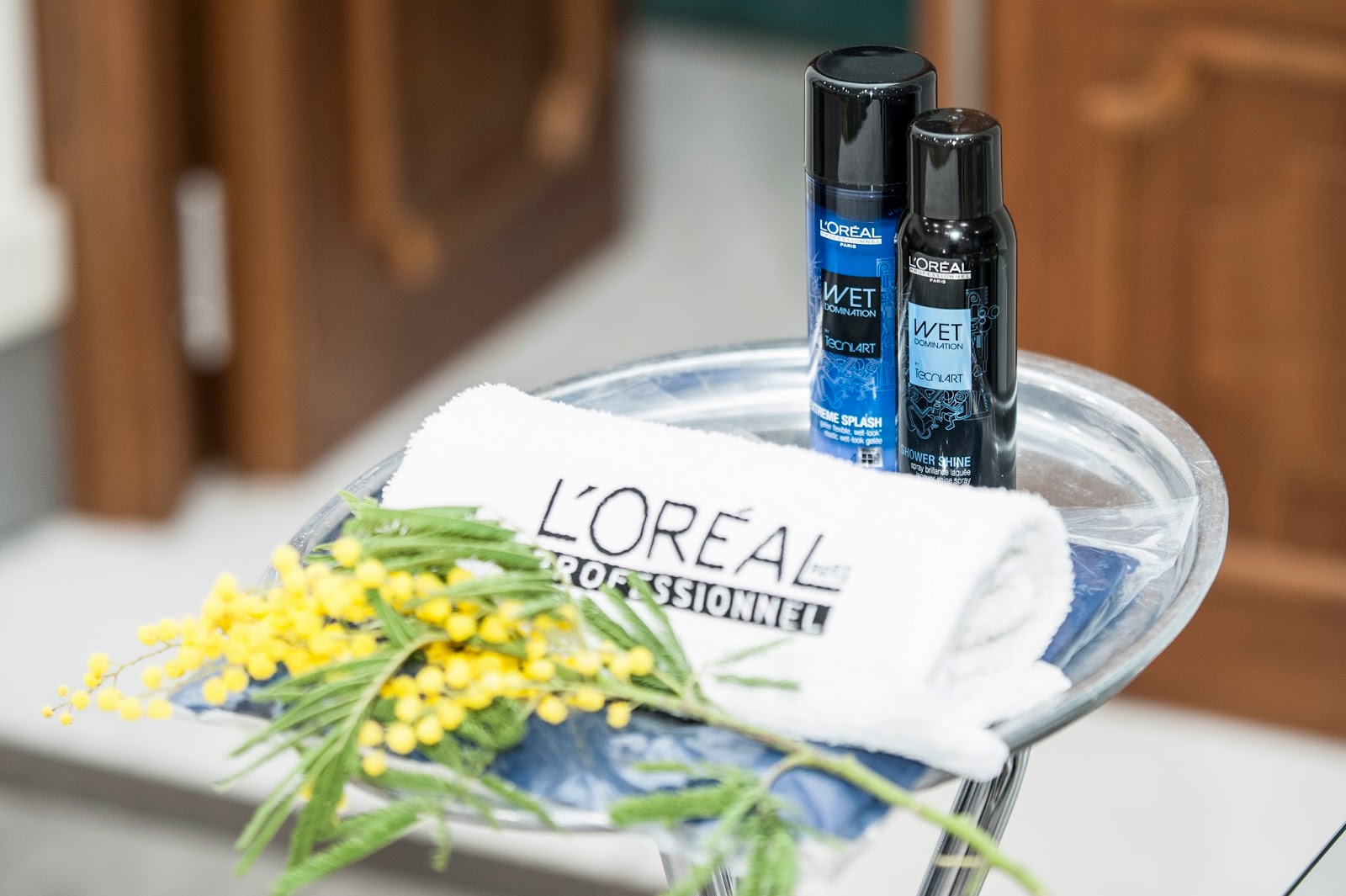 Location dell’evento la splendida Accademia L’Orèal nei pressi di P.zza di Spagna a Roma, e protagonisti della giornata, i nuovi prodotti per lo styling della linea Wet Domination :