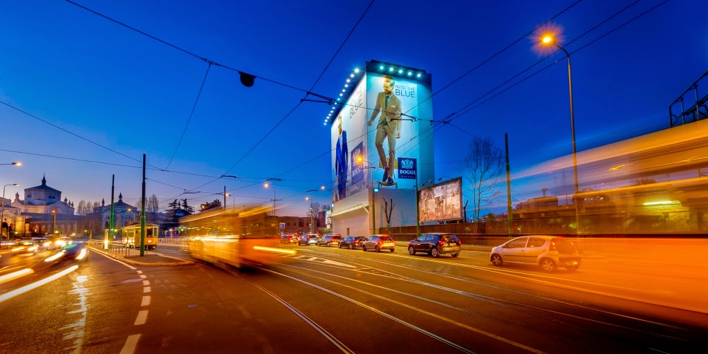 L’affissione più grande e più spettacolare è senza dubbio quella presente a Milano fino al 22 marzo: 1000 mq di advertising sovrastano la stazione Garibaldi, porta di accesso alla città, precisamente in Via Farini angolo Via Ferrari, per comunicare con immagini precise ed accattivanti il messaggio portante della campagna: IL COLORE BLU.
