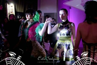 Gli accessori utilizzati sono composti da perle, Swarovski e piume.