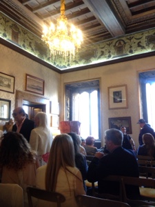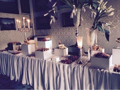 Dopo la presentazione gli ospiti si sono trasferiti negli altri saloni del palazzo per gustare un delizioso buffet, arricchito da delle preziose tovaglie di seta bianca, cristalli ed argenti e fiori bianchi a dismisura, completato da una meravigliosa torta a tre piani con in cima la corona nazionale della casata della Marchesa d’Aragona, il tutto preparato dal Mencarelli Catering e Banqueting group, gli allestimenti floreali sono stati curati dall’Architetto Decor Flower Daniele Colozza.