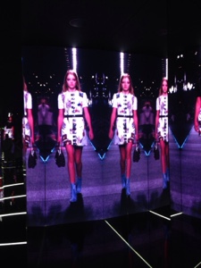 Si prosegue nella Talking Faces ,che permette di rivivere la scenografia iniziale della sfilata SS2015 svolta all’interno della Fondation Louis Vuitton a Parigi.