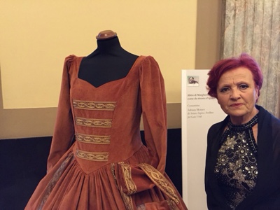 Nella splendida cornice di Palazzo Aeronautica, a Roma, sede istituzionale dell’Aeronautica Militare, vengono messi in mostra cimeli storici di Giuseppe Verdi, e tre abiti storici riprodotti dalla stilista campana Adriana Monaco. Per la prima volta nella storia, Adriana Monaco ha riprodotto, nel suo laboratorio di Ariano Irpino, l’abito che indossa Margherita Barezzi, prima moglie di Giuseppe Verdi, in uno storico ritratto di Augusto Mussini del 1840. Velluto color aragosta, pizzo delicato, merletti, una piccola borsa da polso. Riprodotto anche un abito in seta e pizzo rosa di Violetta, ispirato da Maria Callas, ed un costume in velluto verde e lana rossa del Duca di Mantova dal Rigoletto. La costumista, con l’etichetta Villa Cesarina by Adriana Monaco, si è specializzata nella realizzazione di abiti storici e fantasy, e promuove la cultura attraverso il Gruppo di danza “Gruppo Campano Adriana Monaco S.D.C.I.” spostandosi in Italia e nel mondo.