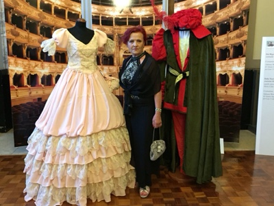 Adriana Monaco riproduce tre abiti storici per Gaia Maschi Verdi, pronipote di Giuseppe Verdi in occasione della Mostra Evento “Giuseppe Verdi e l’Italia” presso il Palazzo dell’Aeronautica Militare Italiana.