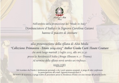 Giada Curti continua il suo percorso di internazionalizzazione con un grande evento sfilata all’Expo di Milano durante i festeggiamenti di chiusura che sarà da trade union con la prossima Expo di Dubai del 2020.