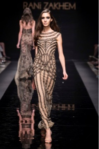 Ambasciatore del glamour Hollywood, Rami Zakhem dedica la sua collezione ai mitici costumisti del cinema americano d’epoca -Gilbert Adrian, Jean Louis, Orry Kelly – e apre la sfilata con un abito che rappresenta un vero e proprio omaggio a Marlene Dietrich. Lo show vuole essere una interpretazione contemporanea dell’allure della moda della prima metà del ‘900, sospesa tra Art Decò, Ertè, i ruggenti anni venti, il cabaret, il desiderio di glamour e di bellezza nonostante il grigiore delle guerre mondiali.