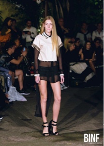 Tessuti coprenti come il denim , eco pelle, e il cotone in contrasto con la leggerezza e la trasparenza dello chiffon, seta organzata, e popeline.