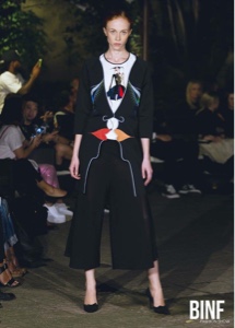 La collezione prende ispirazione dai quadri che la designer stessa dipinge. Forme a trapezio che prendono forma di volti umani.