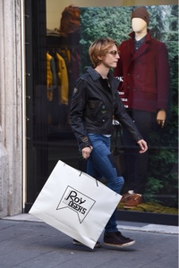 L’attrice ha indossato subito alcuni dei capi acquistati della collezione autunno inverno 2015-16 Roy Roger’s, ed è stata fotografa, in uscita dalla boutique, in jeans cinque tasche con toppe in pelle e lana e il chiodo in pelle con spille e borchie, ispirato a un modello dall’archivio storico Roy Roger’s.