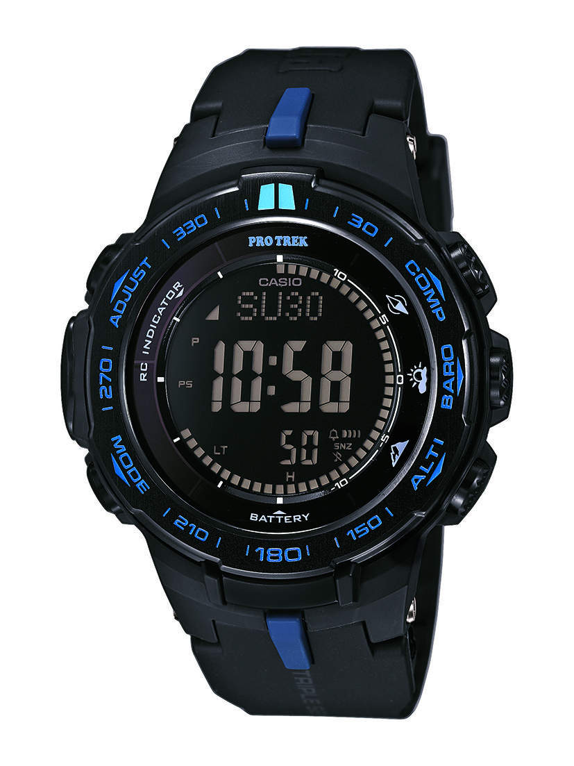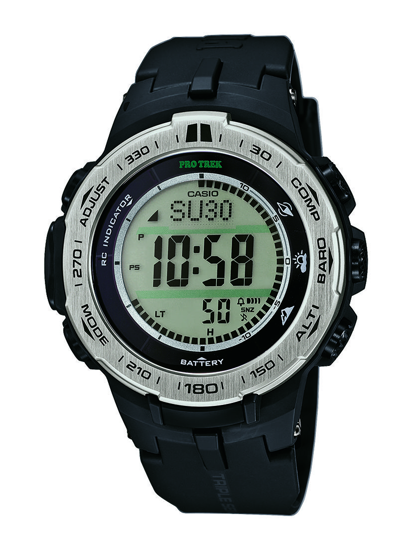 Radiocontrollati grazie a un sofisticato sistema che sincronizza automaticamente l’orario con il segnale di sei stazioni radio posizionate in tutto il mondo, dotati di ricarica solare per un’alimentazione ecologica anche in condizioni di scarsa illuminazione e del sensore di ultima generazione Triple Sensor Ver.3 – composto da barometro per la misurazione di pressione atmosferica e temperatura, bussola digitale di direzione e misuratore di altitudine per visualizzare i dislivelli percorsi – i nuovi PRW-3100 offrono un’elevata accuratezza nel rilevamento di valori e dati ambientali. Con una classe di impermeabilità garantita fino a 10 bar, sono un puro concentrato di tecnologia al polso degli amanti di natura e sport outdoor.