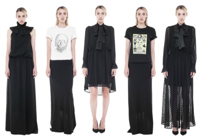 La decadenza e la magia del circo rivivono nei 5 look che vedono alternarsi abiti lunghi proposti in pregiati tessuti fluidi a look di rottura che abbinano t-shirt con stampe originali a lunghe gonne da sera.