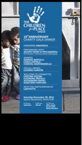 Durante il charity gala dinner saranno consegnati i riconoscimenti 2015 alle personalità che durante l\’anno hanno supportato la Onlus che, da un decennio, opera nei paesi disagiati del Sud del mondo (Etiopia, Syria, Libano, Mali, etc.) per accendere un faro di speranza per i bambini poveri e sieropositivi attraverso concreti piani di supporto didattico, economico e alimentare. Tra i premiati 2015 il direttore di Vanity Fair Spagna, Lourdes Garzòn, il vice-direttore del Gruppo editoriale L\’Espresso Giorgio Martelli, il dott. Carlo Zappalà per il profilo medico e la responsabile Italia del Gruppo De Grisogono, Chantal Montanarella. Conduce l\’evento Maddalena Corvaglia. Madrina del charity event l\’attrice Sarah Felberbaum. Le sonorità swing del trio LaDyvette daranno un tocco retrò alla serata con atmosfere anni Trenta e una lotteria di beneficenza contribuirà a raccogliere fondi per sostenere i progetti in cantiere della Onlus. After party con disco music anni Ottanta a cura della dj Sonia Rondini.