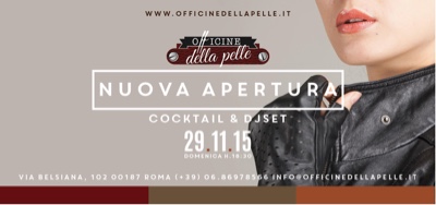 Per celebrare la nuova apertura “Officine della Pelle” ha organizzato un frizzante cocktail, accompagnato da dj set, con la presenza di personaggi noti al pubblico come Naike Rivelli, il calciatore della Roma Alessandro Florenzi, Ilenia Pastorelli, Francesca Valtorta, Anastasia Cuzmina, Simona Borioni, Antonio Brosio, Nunzia De Stefano.