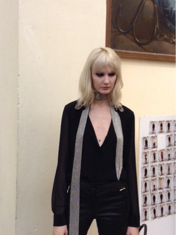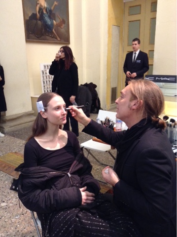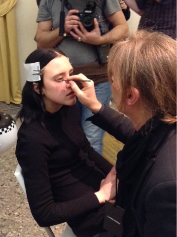 Il Make up curato dal Senior Artist di Mac Cosmetics ,Michele Magnani, è’ molto naturale e leggero senza alterare i lineamenti del viso. Il prodotto usato per la base è’ la lightful C cream che oltre a perfezionare l’incarnato , idrata e ha una protezione SPF 30. Correttore,cipria , e brow set per le sopracciglia.