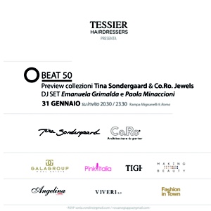 Beat 50 è una serata evento, su invito, dedicata agli anni 50. Musica, Moda e Beauty di quell’epoca rivivono per una sera in chiave contemporanea grazie alle creazioni di Tina Beth Sondergaad, agli accessori Co.Ro. Jewels, alle acconciature Tessier Hairsdressers, al make up di Making Beauty by Chiara e ed alla musica proposta da due insolite Dj: le straordinarie attrici Emanuela Grimalda e Paola Minaccioni.