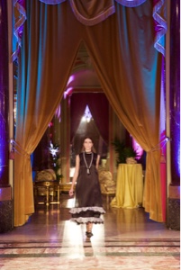 Gli abiti sono realizzati da velate e impalpabili trasparenze, sovrapposizioni inconsuete di tessuti elaborati come il pizzo rebrode’ su vestaglie satin. L’intrigante e sensuale nero crea un effetto di ricercata naturalezza quando si fonde con il bianco etereo. Nodi di grogrè, cordoni di seta circondano il collo, ponchos velati si alternano sul verde smeraldo e pelle d’angelo. Delicate ballerine stringate donano alla silhouette una postura aristocratica.