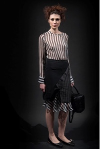 Lo sguardo dello stilista marchigiano si é avvicinato all’universo surrealista con outfits destrutturati dagli elementi classici, con un decisivo cambio di ruolo: colletti e polsi sono dove non dovrebbero essere in un gioco ironico che strizza l’occhio all’arte di Dalì.