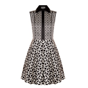 La nota show-girl argentina indossa il Miami dress firmato Maison About. L’abito è caratterizzato da una stampa caleidoscopica e da un mix&match di righe verticali e geometrie che accompagnano tutta la collezione Primavera Estate 2016 del brand.