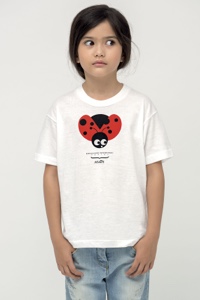 Il pois proposto in rosso e bianco per abiti, pantaloni e t-shirt viene impreziosito da coccinelle stampate e ricamate.