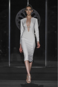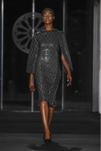 Non poteva mancare, trattando di architettura minimalista, un riferimento alla cultura giapponese. Da qui gli abiti paillettes con lievi accenni alle maniche dei kimoni orientali.