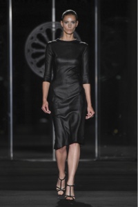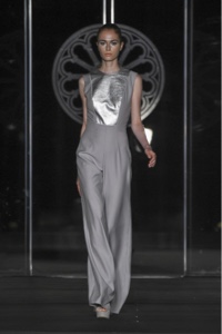 La ricerca del minimalismo nel creare spazi contemplativi, neutrali, attraverso un’architettura basata su onestà materiale e integrità strutturale, con uno studio esemplare del particolare architettonico, si traduce sugli abiti in un sofisticato rigore che è evidente espressione di eleganza formale, di ordine compositivo, raffinatezza ed equilibrio fra le parti. In alcuni outfit il rigore sfiora l’austerità.