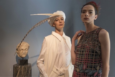 Una capsule collection composta da sei creazioni che lo stilista marchigiano ha immaginato tra highland e castelli e proprio alle torri del maniero di Glamis, residenza natale della regina madre Elisabetta I, fanno pensare gli abiti “conici” che si scostano dal corpo mentre i disegni del ferro battuto delle grate delle finestre si ritrovano nei pizzi vittoriani e nelle lavorazioni di tessuti “non finiti”.