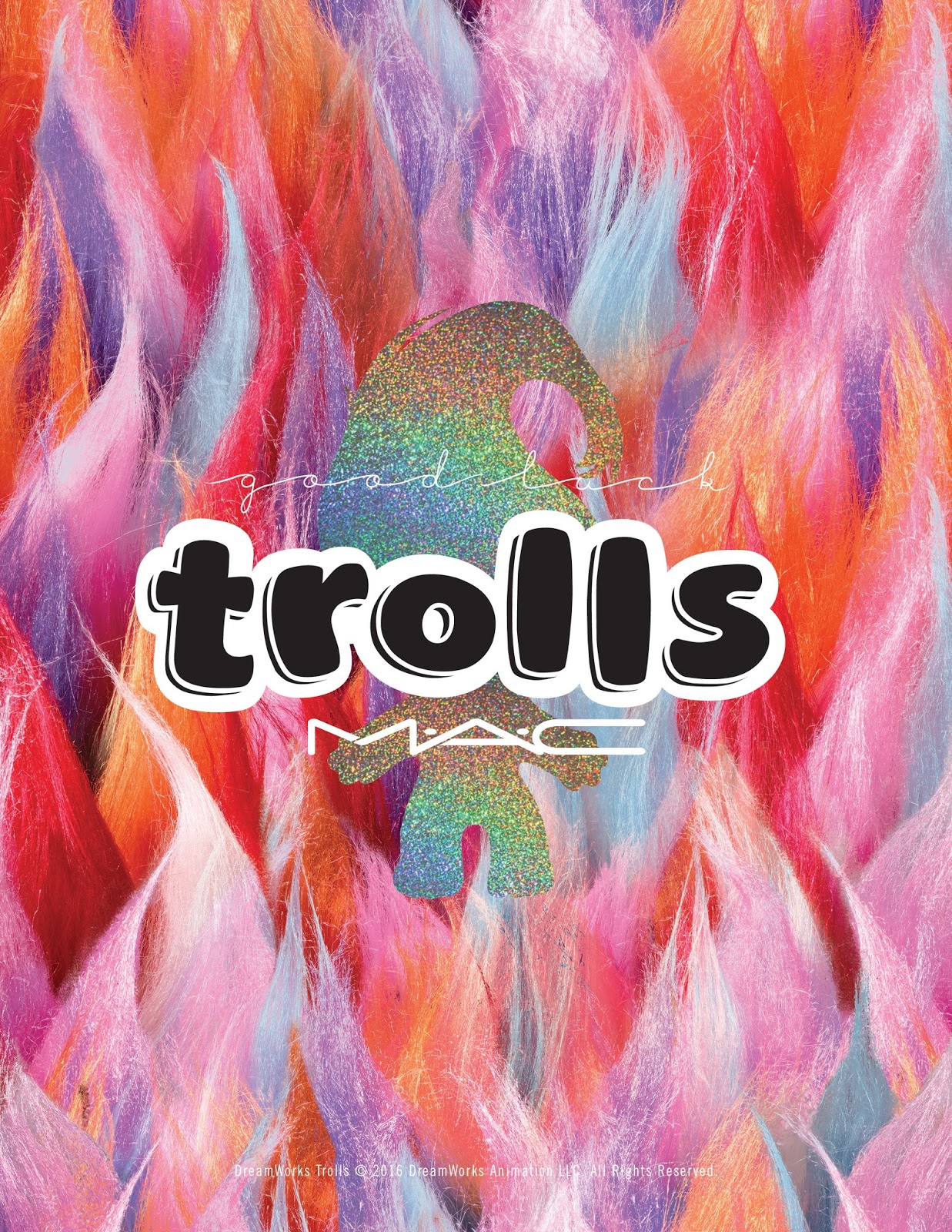 Le bamboline dalla chioma arruffata della tua infanzia portano i loro ciuffi arcobaleno, le loro pancine ingioiellate e i ciondoli portafortuna in M·A·C Good Luck Trolls — una collezione dalle tonalità pazzerelle, vispe e birichine come le stesse creaturine.