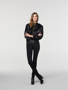 1_Roy Roger’s Bomber in raso con inserti elasticizzati  275 euro, jeans 5 tasche slim in raso elasticizzato nero prezzo 135 euro