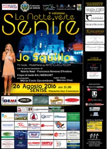 Come ogni anno La Notte Veste Senise e Notte Glamour a Galatone si caratterizzano come venti ricchi di incontri da non perdere, con la presenza di ospiti illustri del mondo istituzionale e personaggi brillanti e famosi dello spettacolo a cominciare dalla esplosiva Jo Squillo che presenterà le serate che andranno in onda su Tv Moda canale 180 di Sky, oltre che sui media locali e nazionali, anche su MODAMANIA trasmissione da lei condotta sulle reti Mediaset (Rete4, La5, TGCOM).