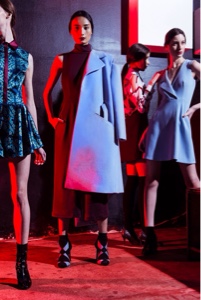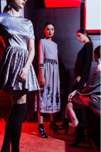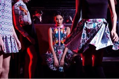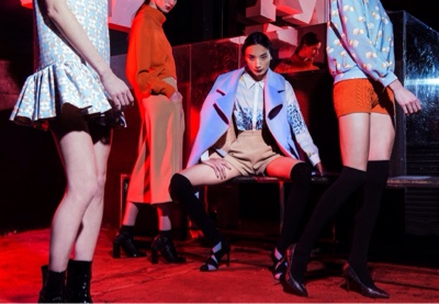 Un gusto poeticamente orientale, forte ispirazione di questa FW, emerge in un vortice di peonie e farfalle che creano pattern irreali per uno stile fusion tra Occidente e il paese del Sol Levante.