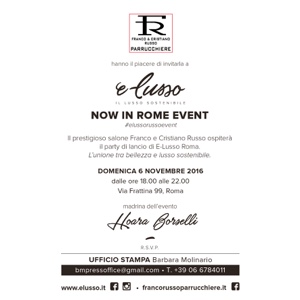 Saranno presentate per la prima volta a Roma le collezioni di borse ed accessori E-Lusso, domenica 6 novembre dalle ore 18 alle ore 22, presso il salone Franco e Cristiano Russo parrucchiere in via Frattina.