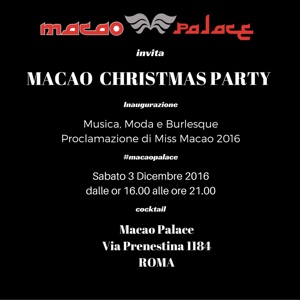 Macao Palace Roma in occasione dell’inaugurazione che si tiene Sabato 3 Dicembre 2016 dalle ore 16.00 alle ore 21.00, apre con una grande festa di auguri per le prossime festività e un cocktail ricco di musica, moda e tanto divertimento il nuovo locale di Via Prenestina 1184.