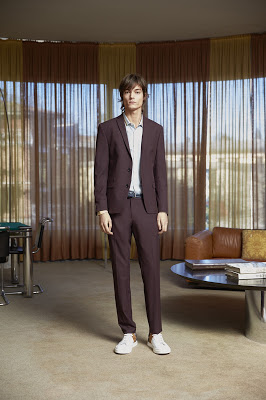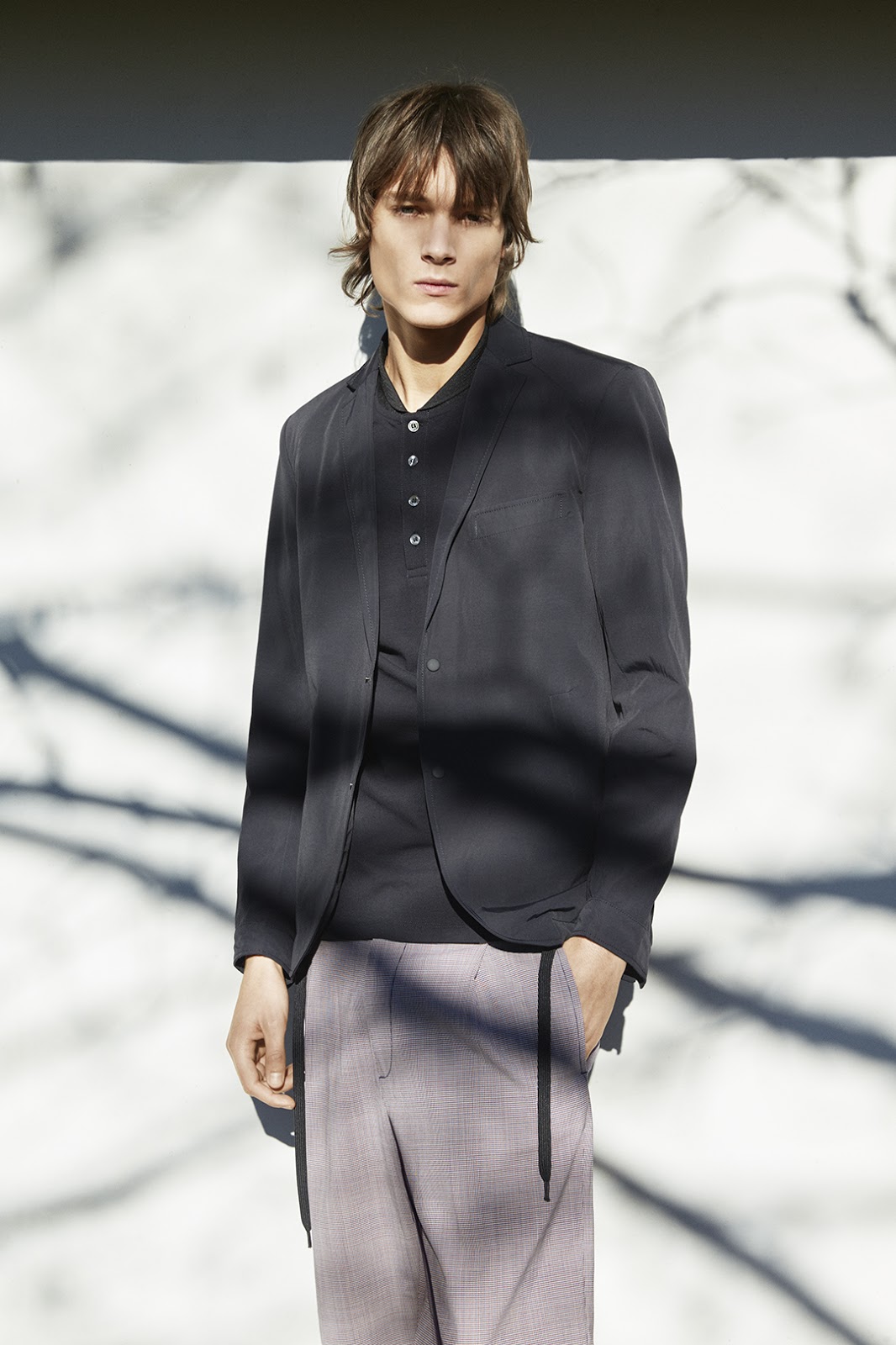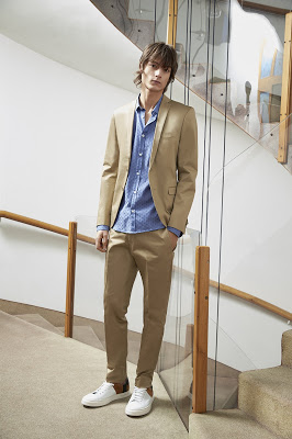 Tessuti increspati per giacche e pantaloni evocano atmosfere estive.