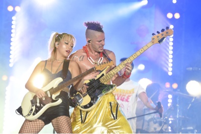 A seguire è salita sul palco la band pop americana in testa alle classifiche, i DNCE, che hanno aperto la loro esibizione con un’intro solenne di Star Wars, sorprendendo il pubblico. La band ha poi continuato ad omaggiare alcune icone della musica mondiale come David Bowie e George Michael, con le cover di vecchi classici compresi Let’s Dance e Freedom, prima di esibirsi con il loro singolo più amato Kissing Strangers. Il loro set è stato arricchito da effetti visivi come getti di coriandoli e Co2, prima di lanciare degli enormi palloni gonfiabili sul pubblico.