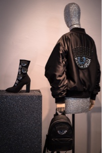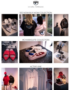 Durante la presentazione della nuova collezione e l’apertura della sua prima boutique milanese, Chiara Ferragni lancia anche una mini-capsule. Viene qui presentata alla stampa e al pubblico, in concomitanza con la nuova P/E 18, con l’eccezione di essere subito disponibile presso le boutiques monobrand Chiara Ferragni, retailers selezionati e naturalmente online. La prima collezione See Now – Buy Now è costituita da pezzi iconici del marchio italiano, arricchiti per l’occasione da ricami e cristalli. La capsule include sabot bassi e con tacco, stivali e bombers, ma anche zainetti e piumini.