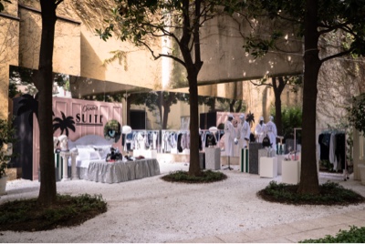 L’iconografia evoca Los Angeles, città dove per prima gli attori lanciarono la moda di vivere nelle suite dei suoi blasonati hotel. Un richiamo al periodo dorato di Hollywood, alle sfarzose ville sulle hills e all’entusiasmante stile di vita delle prime stelle del cinema. Ecco qui allora che le decorazioni sui pezzi iconici del marchio, come slip-ons e ballerine, evocano palme e boulevards di cristalli e ricami. Cocktails Martini ed espressioni quali “Kiss me in My Suite” decorano sabot e tacchi. Gli stessi ricami si ritrovano anche sui capi di abbigliamento ed accessori come t-shirts, felpe, costumi da bagno e pigiami di seta.