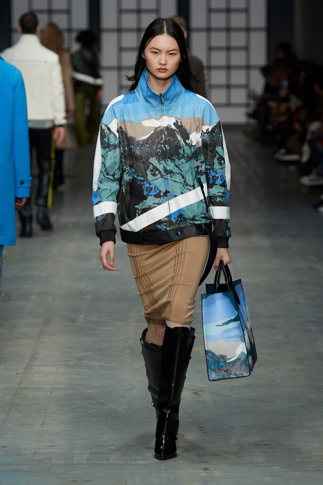 Questi punti cardine dello stile Trussardi, elementi volutamente senza tempo, rompono la distinzione tra città e montagna, daywear e casualwear. Il tartan si presenta in tante dimensioni, da micro a macro, inserendosi in ogni categoria, dal giorno alla sera. Stampe di montagne o di sciatori passano dai capi più sportivi agli abiti da sera scivolati annullando le classiche destinazioni d’uso. E i colori, scelti tra le sfumature di luce che separano l’alba dal giorno e il tramonto dalla notte, danno una nuova profondità ai pezzi icona del guardaroba.