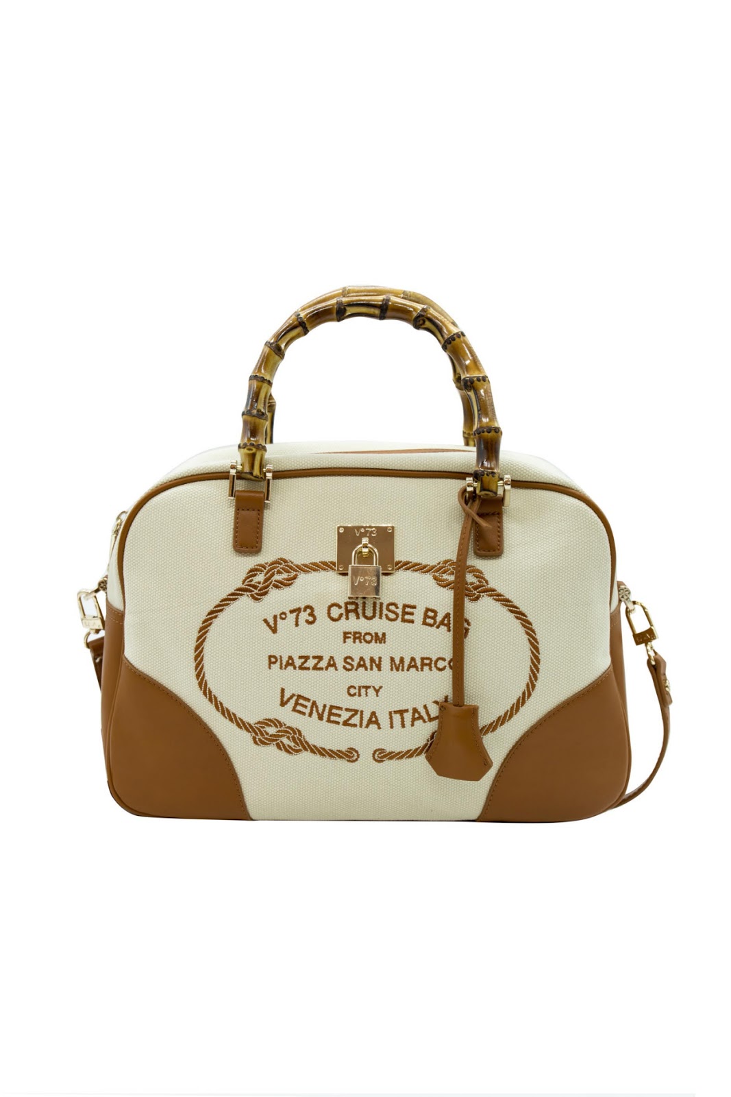 Un viaggio inaspettato, pieno di profumi e di colori, che portano al ritorno del tessuto Canvas, accostato al bambù, che nel bauletto e nella shopping bag della linea Cruise hanno impresso sul fronte l’indirizzo di Venezia, da cui è iniziata la storia di V°73.