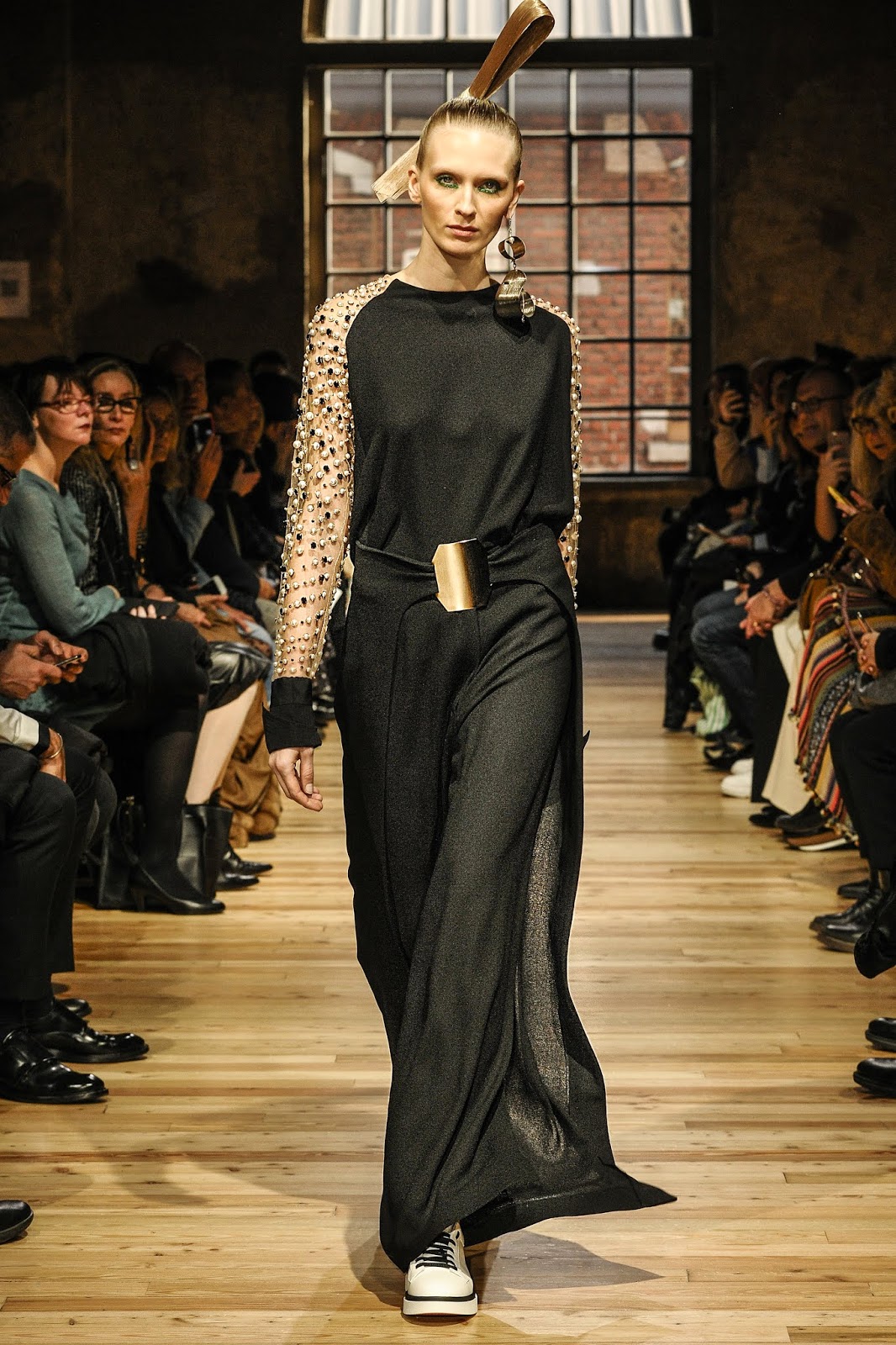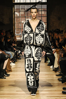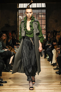 abbinati a giacche sartoriali doppiate in pizzo. I tubini in lana gessata sono interrotti da tulle e maxi