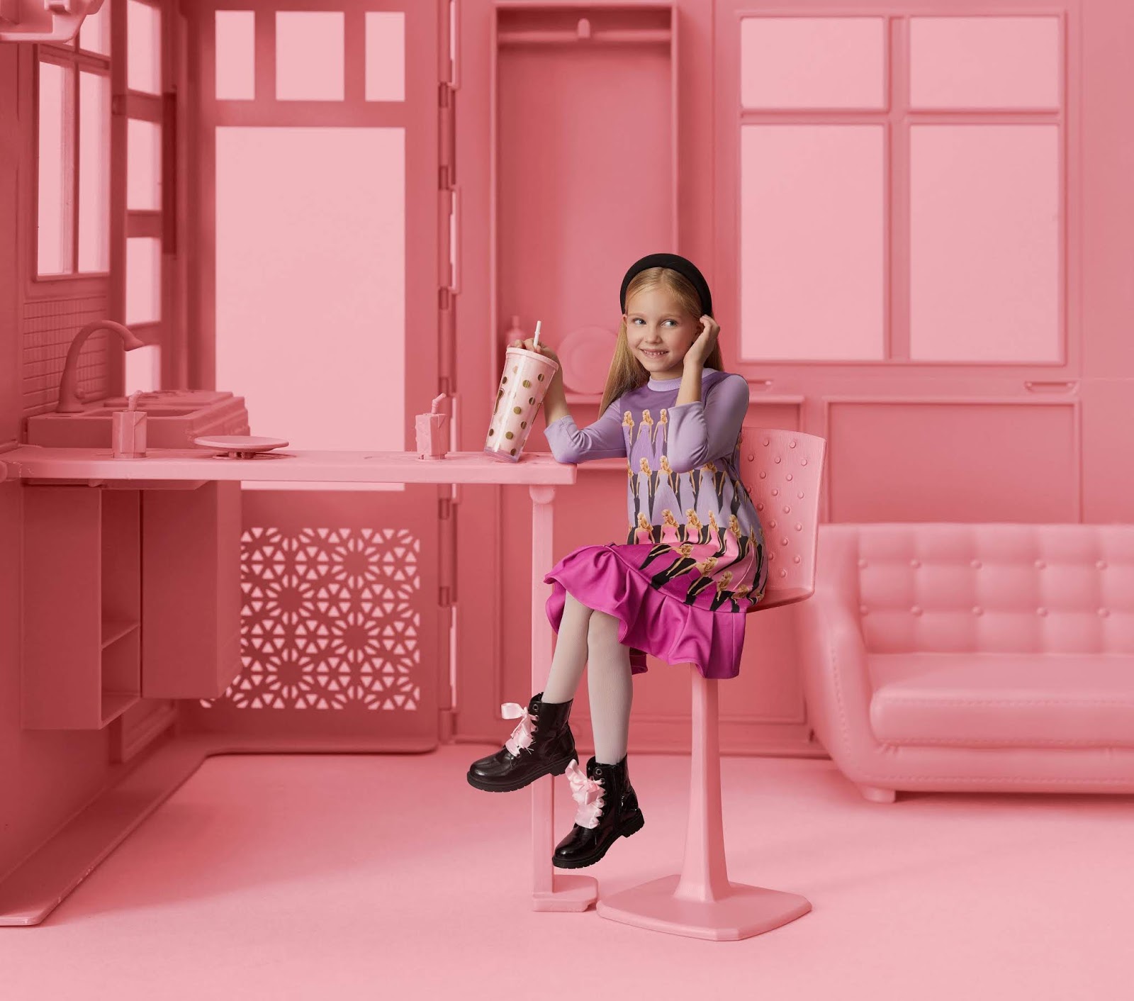 Sempre vicina al mondo della moda, fashion icon e non solo, Barbie ispira le bambine a essere ciò che desiderano sin dalla sua nascita nel 1959. Nella Original ICON Collection, Filippo Laterza esprime la sua creatività anche attraverso la scelta di abbinare il rosa iconico Barbie al color malva, il colore identificativo della sua label, nonché colore che rappresenta la creatività. La capsule è composta da 16 capi iconici e rappresentativi ispirati agli anni ‘60 rivisitati in chiave contemporanea e ricchi di dettagli come l’esclusiva stampa all over con le riproduzioni fotografiche di Barbie, preziose stampe glitterate e applicazioni di strass e ricami. Realizzati con tessuti vaporosi, morbidi e soft touch, come la ciniglia, il jersey stretch, il tulle e lo chiffon, i capi che compongo la capsule spaziano dai leggings alle maglie, dalle gonne agli abiti. Completato gli outfit due proposte di capispalla, il bomber stile biker in satin con maniche raglan e dettagli in