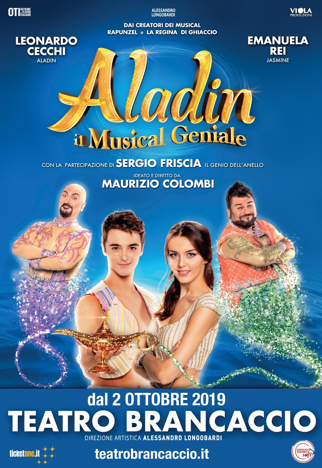 Maurizio Colombi, regista, autore e attore, con Alessandro longobardi, direttore artistico del Teatro Brancaccio, tornanoinsieme per un nuovo grande family show: ALADIN il Musical Geniale con l’intento di replicare il grande successo di “Rapunzel il Musical”, “Peter Pan il musical” e “La Regina di Ghiaccio il musical”.
