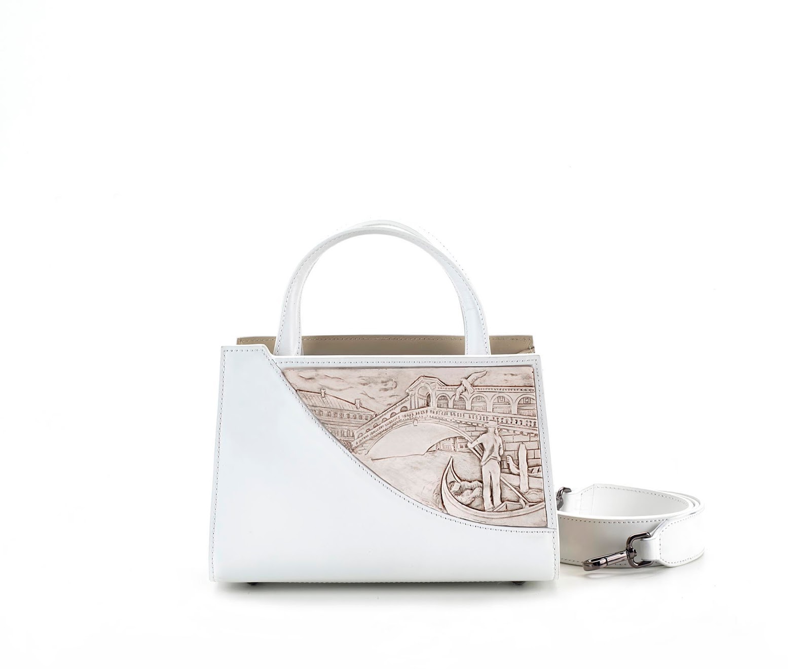 Le borse “City Collection” di Femea Milano riproducono, con bassorilievi realizzati in polvere di marmo, tre importanti città italiane, Roma, Milano e Venezia. Nel dettaglio, piazza di Spagna, piazza Duomo e il ponte del Rialto. Tre luoghi famosi e ammirati in tutto il mondo per la loro bellezza ed esclusività.