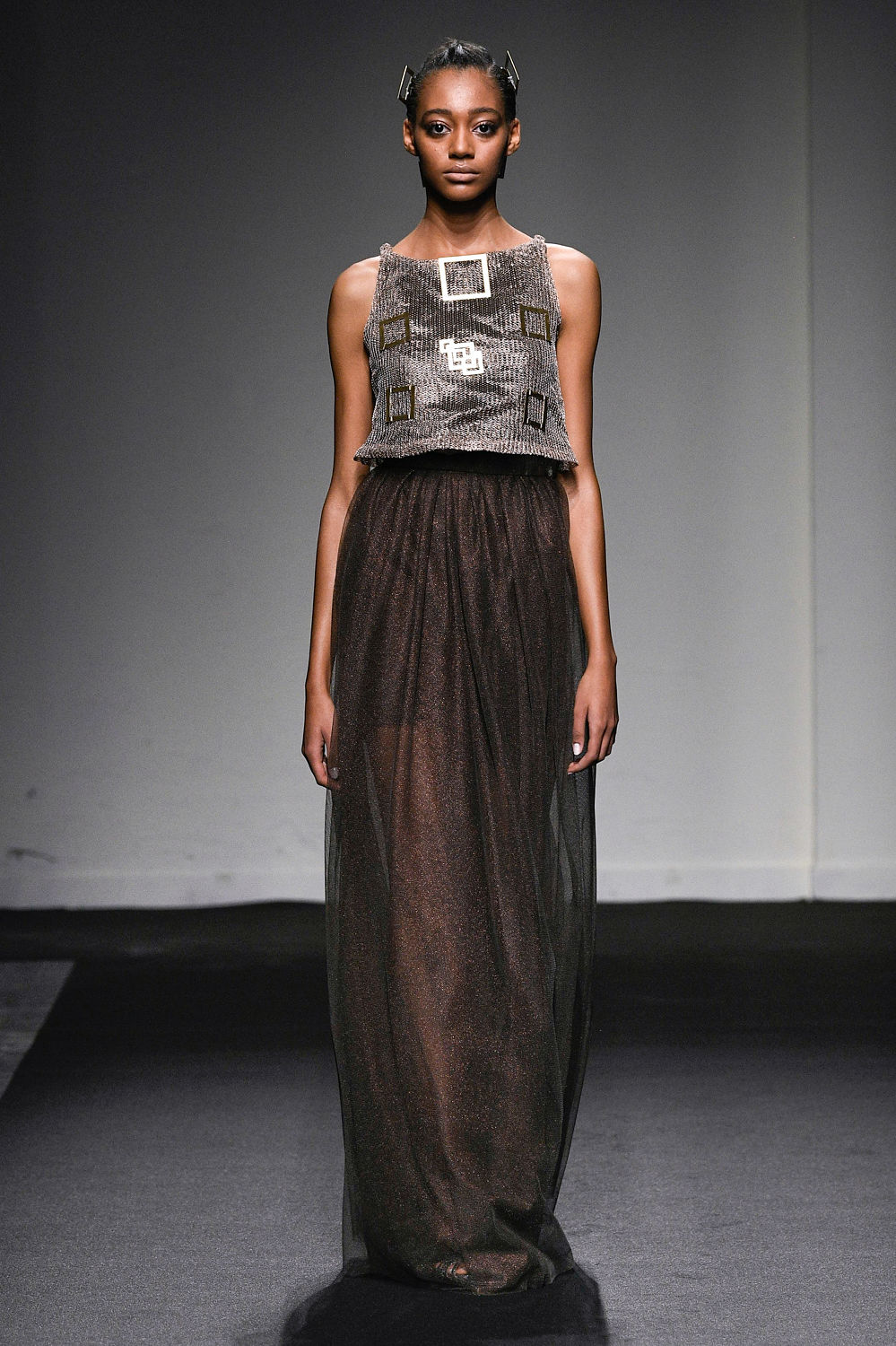Sabrina Persechino sperimenta in questa nuova collezione l’utilizzo di nuove trame e orditi disegnati con programmi di grafica vettoriale e incisi con il laser per ricreare e ricamare “pizzi contemporanei”. Impiega poi la stessa tecnica per la creazione di maglie metalliche in acciaio e rame che sono state successivamente impreziosite da sete e fibbie bronzee.