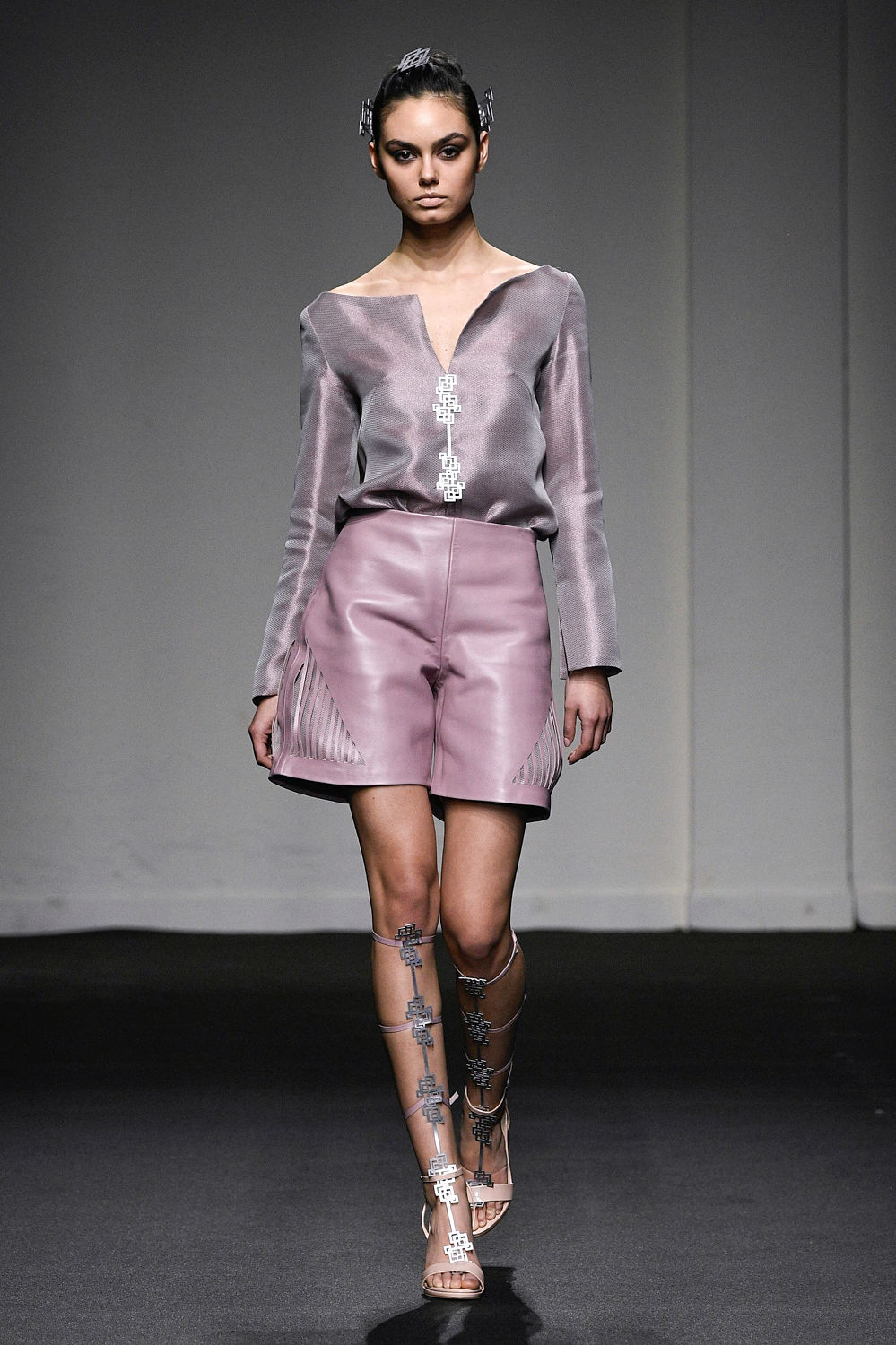Eleganti donne guerriere che indossano con fierezza e raffinatezza stendardi e vessilli della legione di appartenenza; soldatesse protette da armature e da elmi emulati dalle fibbie e dai fermagli metallici inseriti rispettivamente sugli outfit e nei capelli. Per questa collezione, infatti, le sarte dell’atelier Persechino sono state affiancate in laboratorio da fabbri e carpentieri, presi in prestito dai cantieri di Sabrina Persechino Architetto. Anche qui, come nelle collezioni precedenti, sono evidenti le contaminazioni del design e dell’architettura, parte integrante della doppia attività parallela della stilista.
